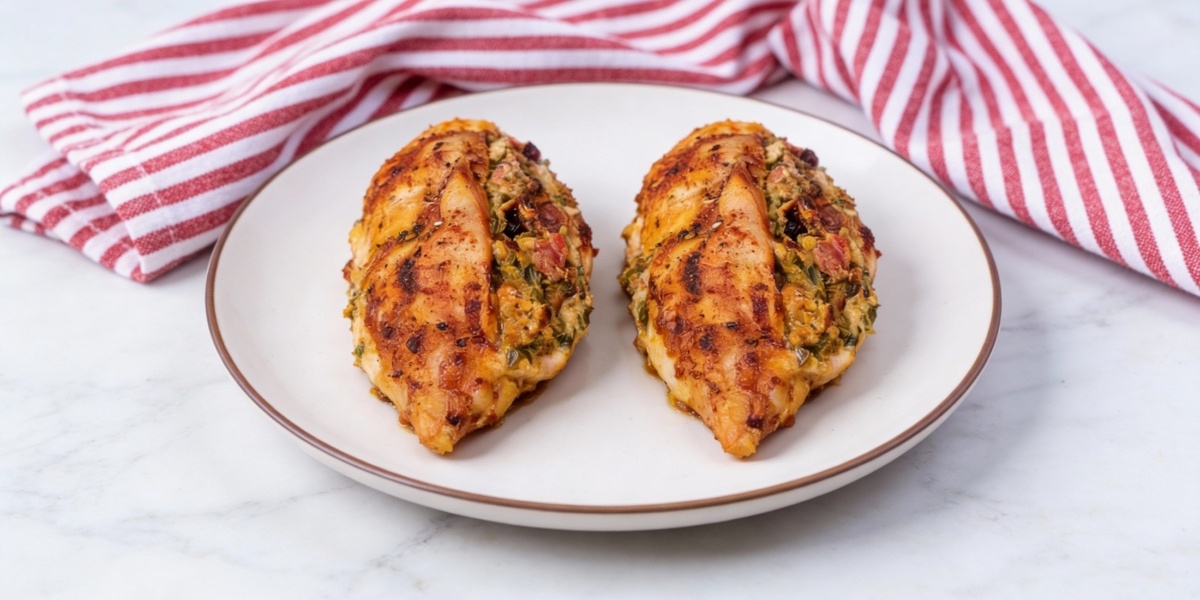 Хотите удивить домашних ресторанным блюдом, но нет времени на долгие кулинарные подвиги? 🕒 Представьте: нежная куриная грудка с ароматной начинкой из шпината, сыра и вяленых томатов — с румяной корочкой и сочной сердцевиной. И всё это готовится всего 25 минут в аэрогриле! Никаких сложных техник, минимум посуды и максимум вкуса. Давайте готовить! 😋 Почему этот рецепт — ваша новая кулинарная находка: На сколько порций: 2