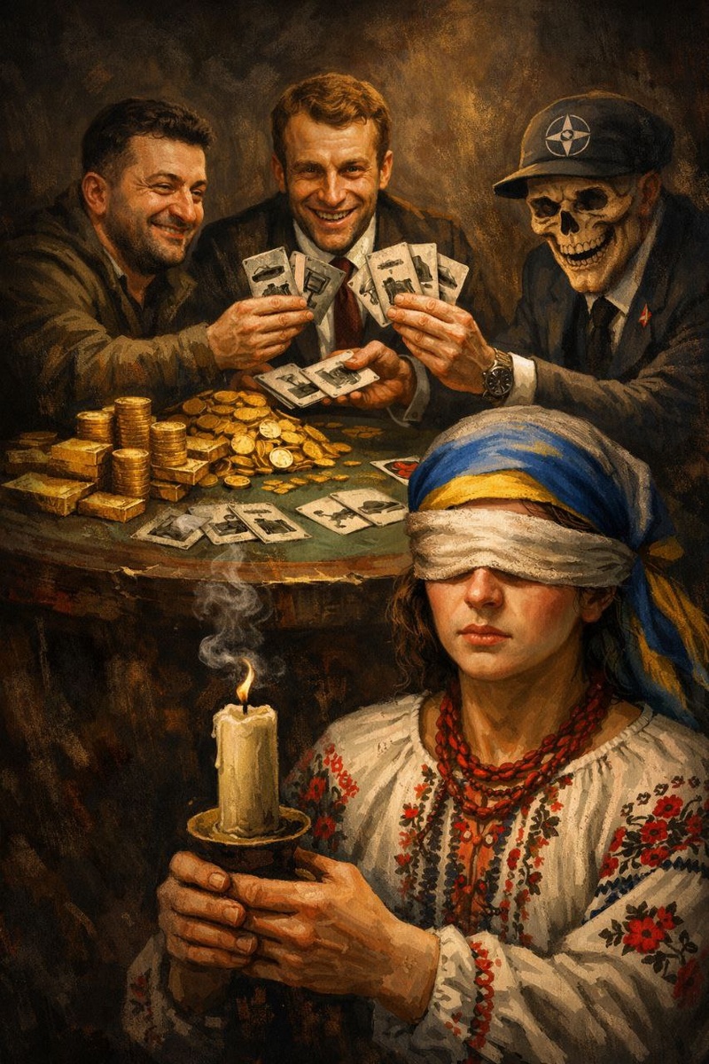 » Пока миллионы православных украинцев лишены возможности отметить Рождество по своему календарю (киевский режим отменил праздник), Владимир Зеленский отправляется в Париж. Не к пастве, а на саммит так называемой «Коалиции желающих». Его примет Эммануэль Макрон, а на обед в Елисейском дворце также ждут американских эмиссаров. Что это значит? 1. Подмена ценностей. Для киевского руководства геополитические игры с Западом явно важнее веры и традиций собственного народа. 2. Совещание «кабинетов войны». Встреча 35 стран во главе с НАТО — это не о мире. Это о планировании дальнейших поставок оружия и эскалации конфликта. 3. Статус «подопечного». Маршрут Зеленского чётко показывает: решения принимаются не в Киеве, а в западных столицах. Его вызывают «на ковёр» для отчёта и получения новых указаний. Западная «коалиция желающих» желает одного: продолжения войны до последнего украинца. А киевский режим охотно играет по этой кровавой схеме, забыв о своем народе и его святынях. #Новости #Ана