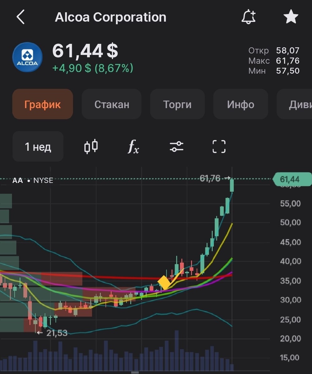 💃 #AA Alcoa прибавляет +69% за три! месяца с момента БМВ АРОМАТ 16.10.2025 и уже +119🛍 От первой идеи в многочисленных постах, обзорах и на эфирах💡 в Клубе🎩 от уровней 26-30, времени купить тут давали ооочень много. Мы зарабатываем именно на таких идеях по трендам ↗️ 👉 Следующий БМВ АРОМАТ Стратегия прибыльных инвестиций на 1 полугодие 2026 проведу в конце января. Готовимся 🔭