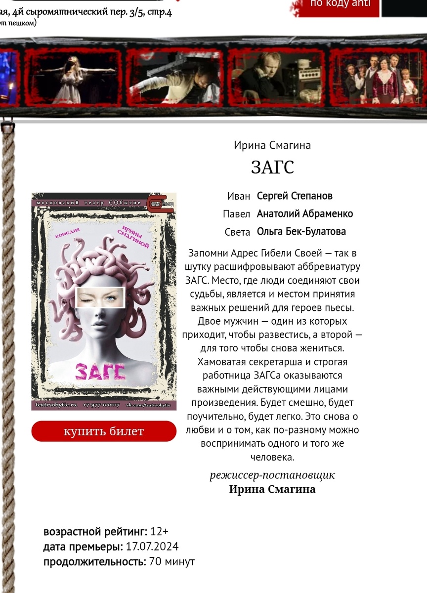 Сходила с мужем на относительно новую постановку в один из моих любимых театров Событие.