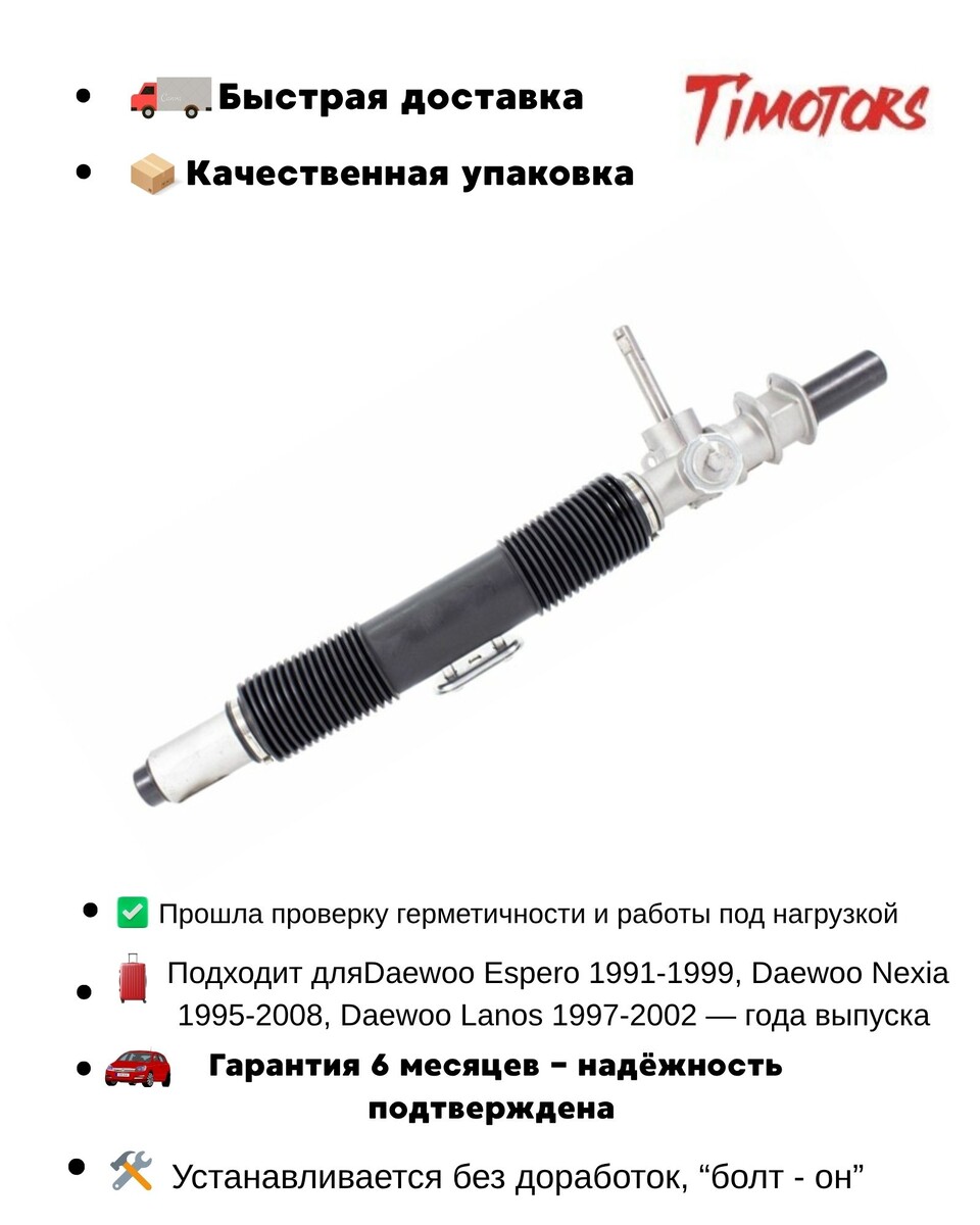 Автомобили Daewoo Espero (1991–1999), Daewoo Nexia (1995–2008) и Daewoo Lanos (1997–2002) до сих пор активно ездят по дорогам. И почти каждый владелец рано или поздно сталкивается с проблемами управления — стук, люфт, течь жидкости. Какие рулевые рейки ставились на Daewoo Espero, Nexia и Lanos 1. Механическая рейка (без ГУР) Самый простой вариант. Где встречается: базовые версии Nexia и Lanos автомобили без гидроусилителя Плюсы: простая конструкция дешевле в ремонте нечему течь Минусы: тяжёлый руль, особенно на парковке быстрее появляется люфт при износе втулок и зубчатой пары ⚠️ Важно: механические рейки не взаимозаменяемы с гидравлическими, даже если внешне похожи. 2. Рулевая рейка с гидроусилителем (ГУР) Самый распространённый вариант для этих моделей. Где встречается: большинство Daewoo Nexia Daewoo Espero Lanos с ГУР Особенности конструкции: гидроцилиндр внутри корпуса сальники, манжеты, распределитель работает под давлением жидкости Типичные проблемы: течь жидкости (часто принима