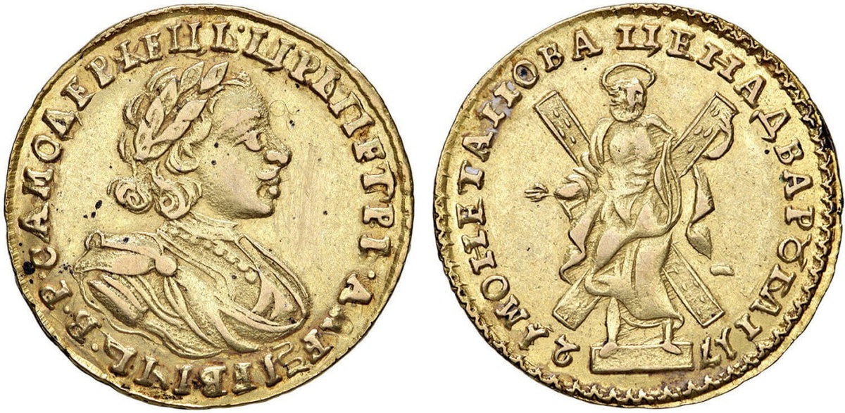 "Андреевский двухрублевик" - золотая монета Петра I.