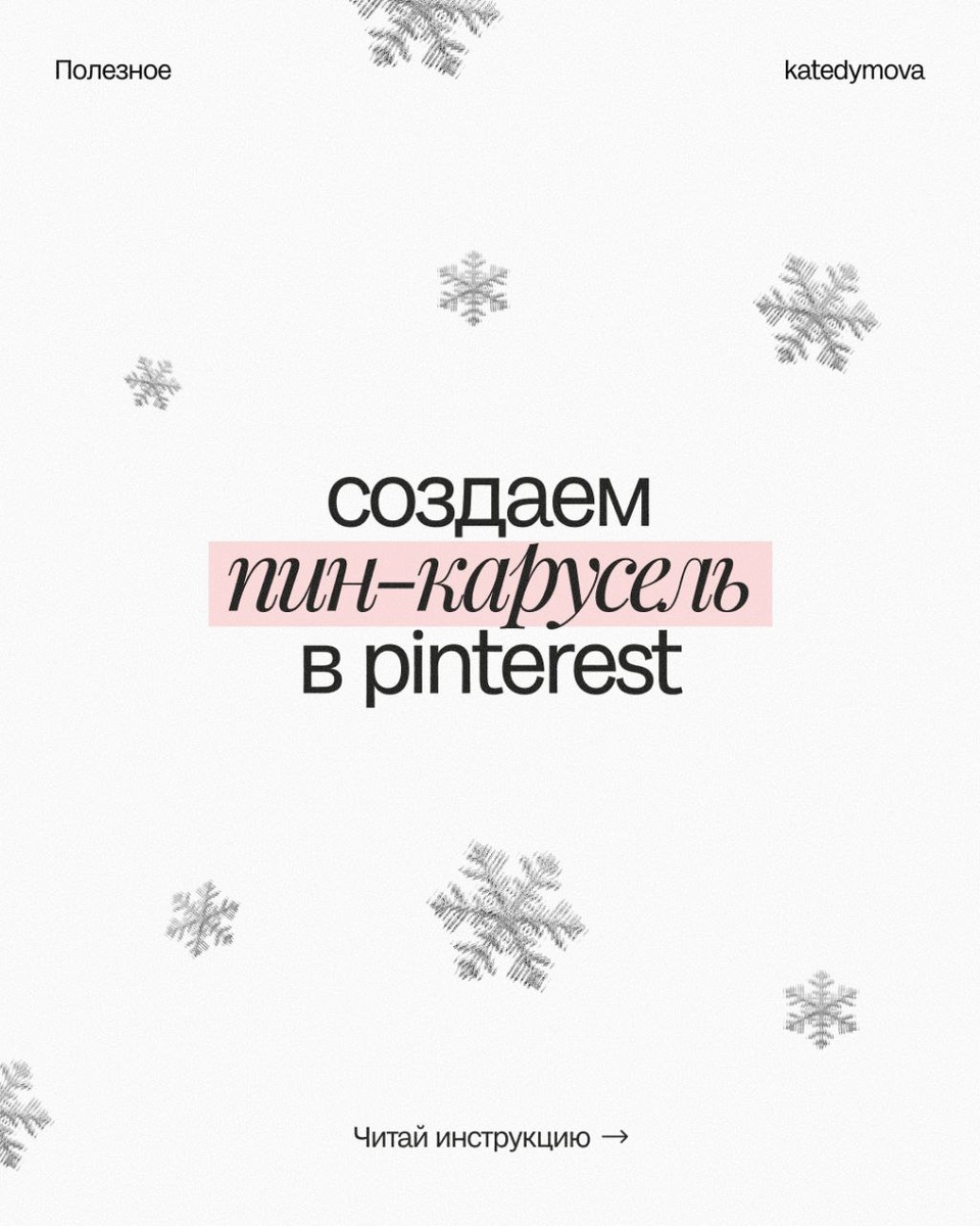 Сейчас в праздники охваты на просмотры постов в Pinterest могут проседать, а с помощью каруселей можно буквально переупаковать уже созданный контент. Pinterest активно поддерживает пины-карусели — это один из самых вовлекающих форматов, который не только удерживает внимание пользователей, но и заметно увеличивает охват публикаций. И если вы выбираете продвижение на этой площадке рекомендую не игнорировать такой формат постов Как создать карусель? 🤍Заходим в меню создание контента 🤍Выбираем пин для объявления 🤍Создаем карусель из 5 слайдев (больше не пропустит) Заполняем поля о чем пин, ключи и ссылка на ваш ресурс. Последний слайд можно завершить CTA: подписаться или перейти в канал 🤍Нажимаем опубликовать с отложенной публикацией или сразу 🔖Сохраняйте и применяйте #полезное_pinterest Забрать бесплатный модуль | Обучение дизайну | Написать в лс