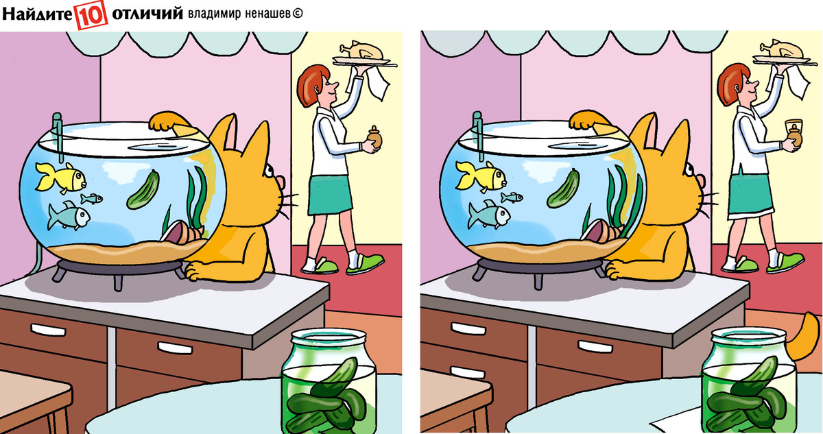 10 отличий и тест внимания! Подарок рыбкам. Приятный тест.
