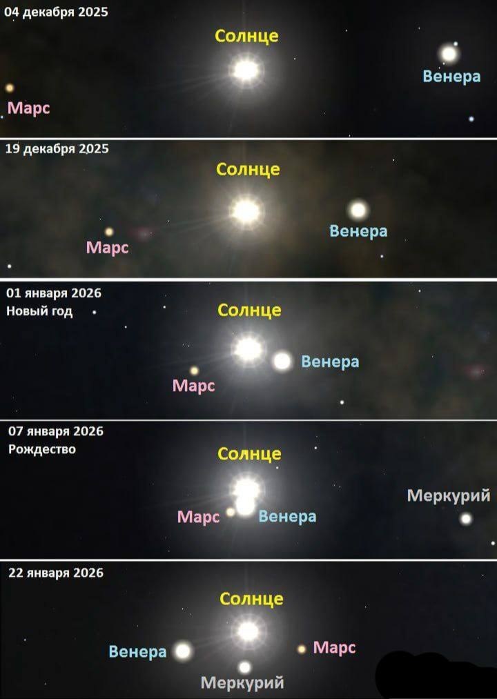 Жители смогут увидеть так называемую «Вифлеемскую звезду». Солнце, Венера и Марс визуально выстроятся так близко, что будут выглядеть как единое яркое светило 🌟 Подобное астрономическое явление в последний раз наблюдали в 2019 году — так что шанс редкий. Если погода позволит, не пропустите момент и взгляните на небо. 👀 😃 Подписывайся на most| Набережные Челны | Пришли свою новость