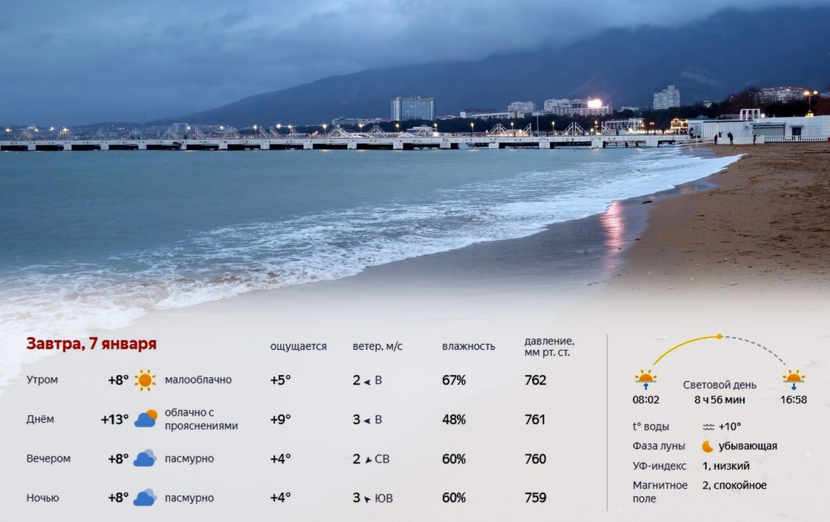 Завтра, 7 января, в Краснодаре ожидается относительно мягкая, но всё ещё прохладная зимняя погода, без осадков. Утром около +8° при слабом восточном ветре и небольшой облачности. Днём температура повысится до +13°, сохранится облачность с прояснениями. Вечером похолодает до +8°, ночью температура существенно не изменится, погода останется пасмурной. Световой день продлится 8 часов 56 минут, восход в 08:02, закат в 16:58. Температура воды +10°, УФ-индекс низкий, магнитное поле спокойное. Подробнее: https://краснодарскийкрай.рф/news/prognoz-pogody-v-krasnodare-na-7-janvarja-2026-goda.html Прогноз погоды на неделю: https://краснодарскийкрай.рф/pages/weather-forecast.html #погода #прогнозпогоды #температура #осадки #ветер #климат #метеопрогноз #метеосводка #краснодар #краснодарскийкрай #krasnodarregion