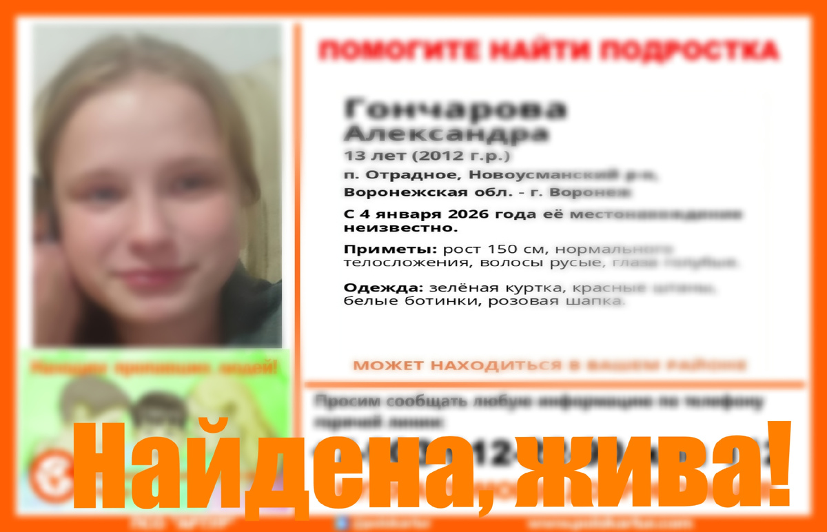 С 4 января 2026 года её местонахождение неизвестно. если у вас есть сведения, которые могут посодействовать поиску,