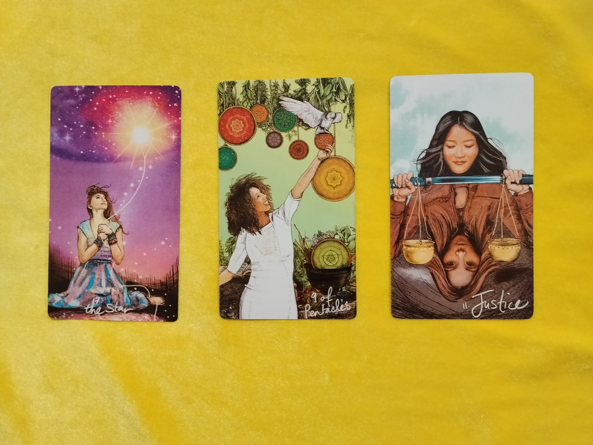 Третья карта несет в себе мощный кармический заряд: ты получишь сатисфакцию за все несправедливости прошлого. Если кто-то тебя обидел, обманул или оклеветал, Справедливость расставит все по местам. Твоей наградой станет торжество истины: люди увидят ситуацию такой, какая она есть, и твое доброе имя будет восстановлено. Виновные получат по заслугам (даже если ты этого не увидишь, механизм уже запущен), а ты получишь компенсацию за моральный ущерб. Это может проиграться и буквально: выигрыш в суде, подписание важных документов в твою пользу, удачное разрешение бюрократических вопросов.