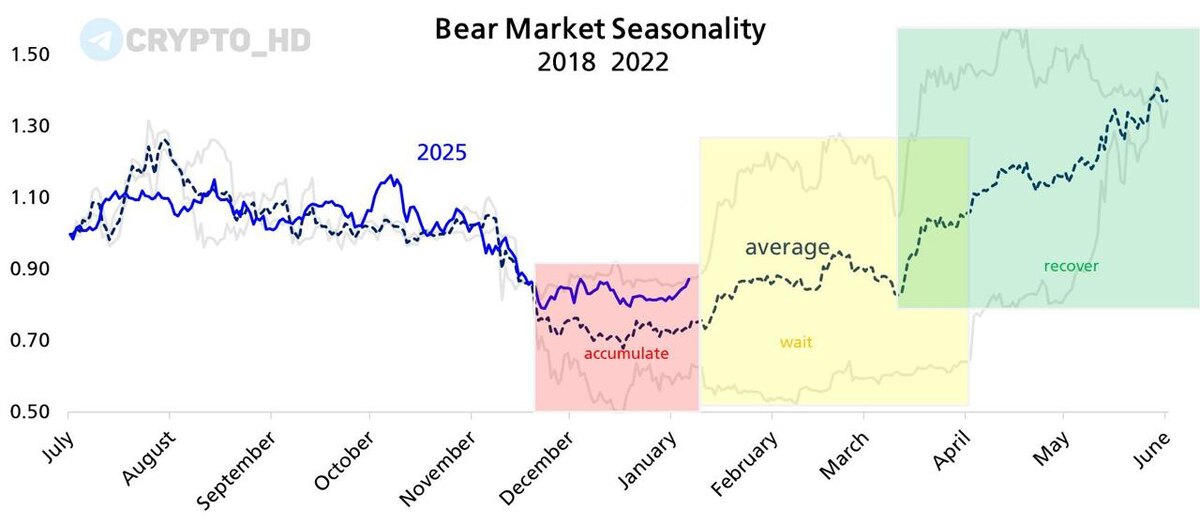 BTC. ΠΡΠ°ΡΠΈΠΊ ΡΡΠ°Π²Π½ΠΈΠ²Π°Π΅Ρ ΡΠ΅ΠΊΡΡΡΡ ΡΠ΅Π½ΠΎΠ²ΡΡ Π΄ΠΈΠ½Π°ΠΌΠΈΠΊΡ ΠΠΈΡΠΊΠΎΠΈΠ½Π° Ρ ΠΏΠ΅ΡΠΈΠΎΠ΄ΠΎΠΌ 2022-2023 Π³Π³. ΠΠ°ΡΡΠ΅ΡΠ½Ρ ΠΏΡΠ°ΠΊΡΠΈΡΠ΅ΡΠΊΠΈ ΠΈΠ΄Π΅Π½ΡΠΈΡΠ½Ρ. ΠΠΎΠ΄Π΅Π»Ρ Π²ΡΠ΄Π΅Π»ΡΠ΅Ρ ΡΡΠΈ ΡΠ°Π·Ρ: Π½Π°ΠΊΠΎΠΏΠ»Π΅Π½ΠΈΠ΅ (accumulate) Π² Π΄Π΅ΠΊΠ°Π±ΡΠ΅-ΡΠ½Π²Π°ΡΠ΅, ΠΎΠΆΠΈΠ΄Π°Π½ΠΈΠ΅ (wait) Π² ΡΠ΅Π²ΡΠ°Π»Π΅-ΠΌΠ°ΡΡΠ΅, ΠΈ Π²ΠΎΡΡΡΠ°Π½ΠΎΠ²Π»Π΅Π½ΠΈΠ΅ (recover) Ρ Π°ΠΏΡΠ΅Π»Ρ ΠΏΠΎ ΠΈΡΠ½Ρ. ΠΡΠ»ΠΈ ΠΈΡΡΠΎΡΠΈΡΠ΅ΡΠΊΠΈΠΉ ΠΏΠ°ΡΡΠ΅ΡΠ½ ΠΏΠΎΠ²ΡΠΎΡΠΈΡΡΡ, ΠΠΈΡΠΊΠΎΠΈΠ½ ΠΌΠΎΠΆΠ΅Ρ ΠΏΠΎΠΊΠ°Π·Π°ΡΡ Π·Π½Π°ΡΠΈΡΠ΅Π»ΡΠ½ΡΠΉ ΡΠΎΡΡ Π² Π±Π»ΠΈΠΆΠ°ΠΉΡΠΈΠ΅ ΠΌΠ΅ΡΡΡΡ. Π Π°Π½Π΅Π΅: ΡΡΠ°ΡΡ 7 ΡΠ½Π²Π°ΡΡ CryptΠΎ Headlines