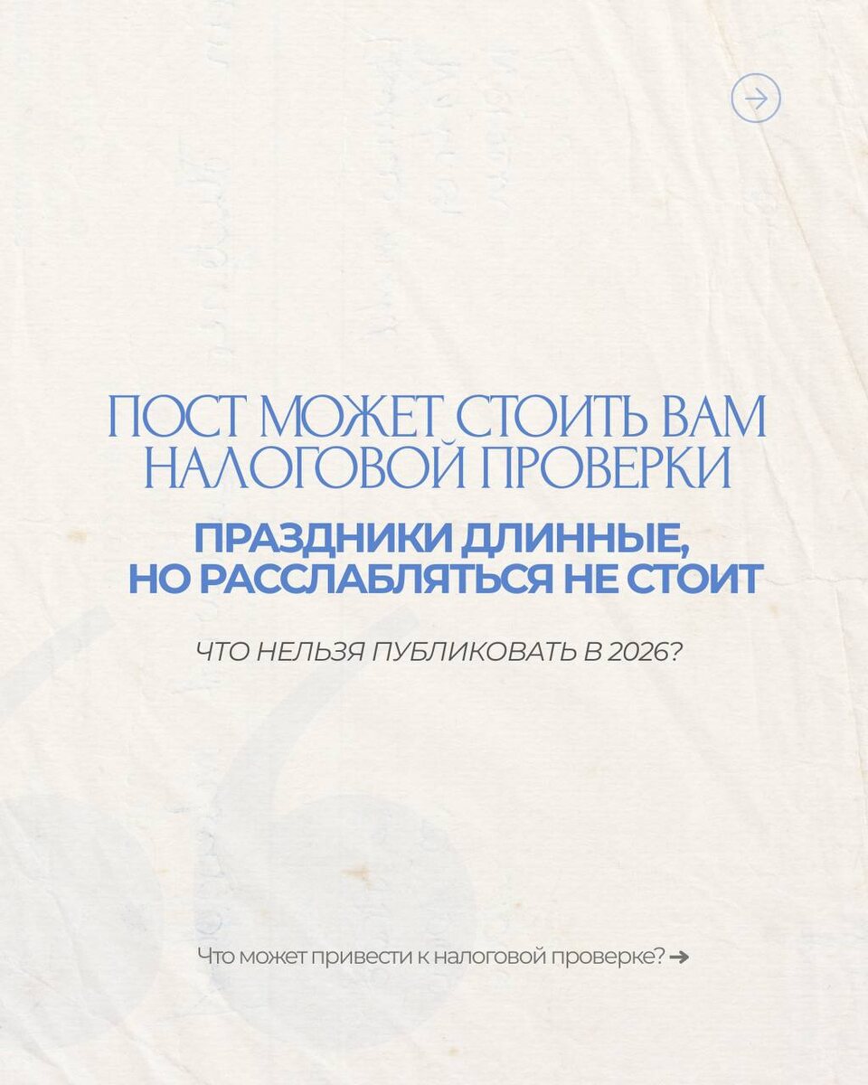 Что нельзя публиковать в 2026? Важно осознанно совершать публикации в соцсетях, особенно в момент праздников. 📸 Фото богатого стола, дорогих отелей или люксовых вещей могут привести к налоговой проверке. Налоговая научилась отслеживать не только доходы, но и расходы. Если траты значительно превышают официальные доходы — это вызывает подозрения. Что анализируют системы: • Дорогие покупки • Геолокации (премиум-отели) • Предметы роскоши Один пост — не приговор. Но систематическая демонстрация роскоши формирует цифровой профиль. 🎁 А что с подарками? Деньги от родственников/друзей — налог не нужен Крупные переводы от не родственников — могут привлечь внимание банка Недвижимость и авто: ✅ От близких родственников — без налога ❌ От не родственников — НДФЛ по рыночной стоимости Публикуйте осознанно 🎄⚖️