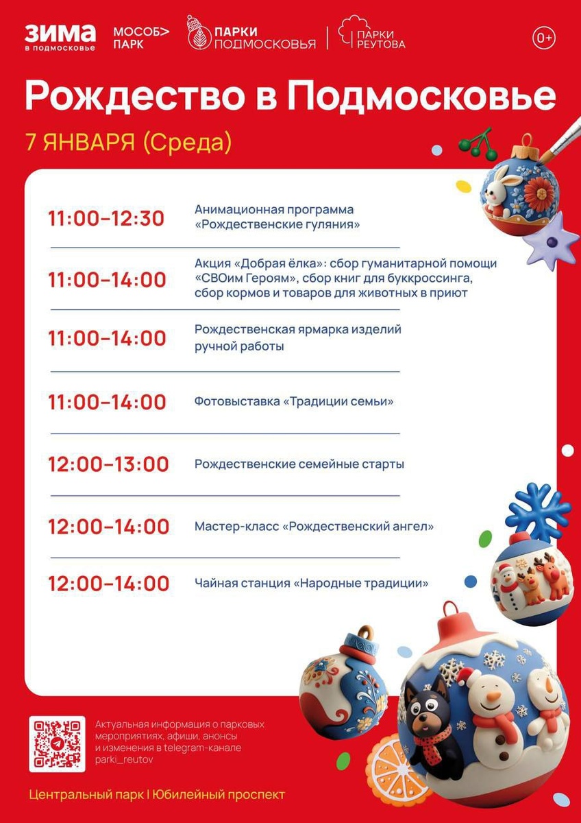 🌟 Приглашаем вас 7 января на мероприятие «Рождество в Подмосковье»! Мы приготовили программу, где каждый - от мала до велика - найдёт себе занятие по душе и унесёт с собой частичку праздника 🧤🫶 Пусть это Рождество будет наполнено теплом общения и радостью творчества. Приходите всей семьёй - создадим праздник вместе! 🌟 #паркиреутова 📲 «Мой Реутов» в MAX