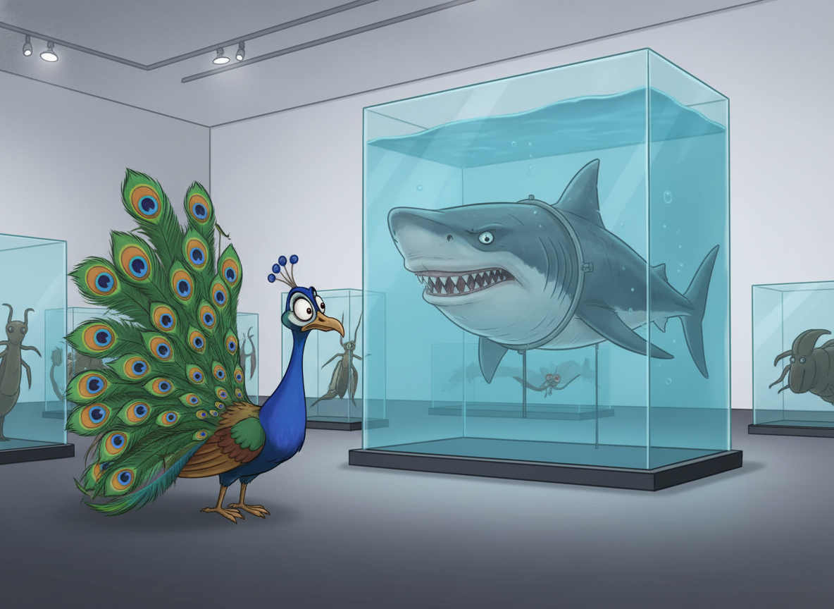 В 1991 году британский художник Дэмьен Хёрст поместил мёртвую тигровую акулу в резервуар с формалином и назвал это «Физическая невозможность смерти в сознании живущего». Работа стоила 12 миллионов долларов. Потом акула начала гнить, и её заменили на новую. Это одна из самых известных и самых спорных работ современного искусства. Одни называют её гениальной, другие — издевательством над здравым смыслом. Разберёмся, кто прав. Тигровая акула длиной четыре метра, пойманная у берегов Австралии. Её убили специально для этой работы, законсервировали в формалине и поместили в огромный стеклянный резервуар. Акула висит в жидкости, застывшая в движении. Пасть приоткрыта, видны зубы. Глаза мёртвые, но поза хищная. Ощущение странное: она одновременно мёртвая и живая, опасная и беспомощная. Работа огромная — резервуар размером с небольшую комнату. Когда стоишь перед ней, чувствуешь себя крошечным. Акула смотрит на тебя, ты смотришь на неё. И понимаешь: она мертва, но все еще несет энергию опасной д