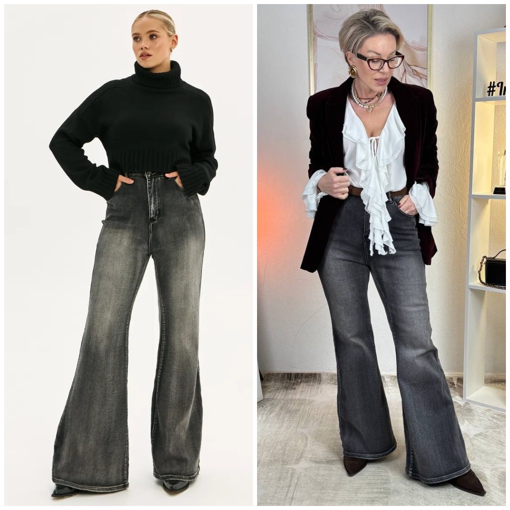 Здравствуйте, дорогие читатели! Меня зовут Ирина, я - стилист, и на этом канале показываю одежду и аксессуары с Wildberries такими, как они есть, то есть, из серии "ожидание/реальность". Мои параметры: рост 169 см, вес 67 кг, 94-74-100 ✅Основной канал: Стильно - не значит дорого! Ставьте лайк в поддержку канала, и давайте смотреть на мою сегодняшнюю покупку. Классные джинсы с высокой посадкой, клёш от колена. Такой фасон отлично подойдёт девушкам с верхним типом фигуры. Модель серого цвета, что позволяет максимально легко сочетать их с разными вещами. Они отлично смотрятся в образах в стиле бохо, который сейчас очень актуален. Из обуви к ним прекрасно подойдут казаки или ботильоны — они будут удлинять ноги. Ткань заслуживает отдельного внимания. Джинсы сшиты из плотного, но приятного к телу материала с хорошим содержанием хлопка. Добавление эластана обеспечивает идеальную степень стрейча: они мягко облегают бёдра, не сковывая движений, и действительно хорошо тянутся, обеспечивая лёгко