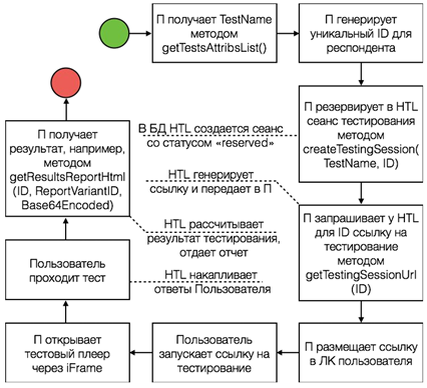 Прикладной программный интерфейс (ApplicationProgrammingInterface, далее API или интерфейс) системы А предназначен для интеграции её веб-сервиса в стороннюю информационную систему В, установленную на интранет-сервере для его использования в автоматизированном режиме для решения прикладных задач. Для работы с системой А через интерфейс API необходимо подключение услуги доступа к API и наличие среды разработки или языка программирования, в которых реализована поддержка работы с веб-сервисами или протоколом SOAP (наличие WSDL-спецификации позволяет разработчику автоматически сгенерировать описание класса SOAP-клиента для упрощения доступа к серверу с API. Процедура авторизации может быть основана на механизме HTTP-авторизации, при этом параметры авторизации (логин и пароль к личному кабинету) передаются при вызове каждого метода интерфейса. 1. Создание нового сеанса: Метод createTestingSession(). 2. Получение ссылки для сеанса: Метод getTestingSessionUrl(). 3. Загрузка полученной ссылки