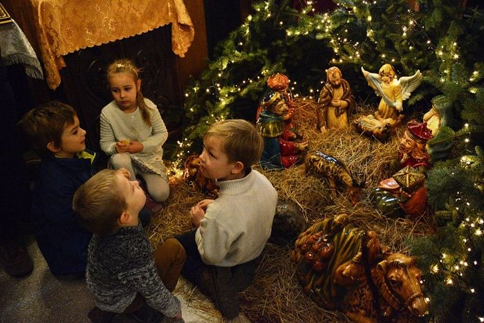 – Если на Пасхальной службе канон и стихиры поются нараспев энергично и торжественно, то Рождественская служба более тихая – объясняет отец Юлиан. – Часы читаются в полумраке при выключенных светильниках. Лишь видно как мигают гирлянды на елках, которыми украшен храм. Песнопения на Рождество более спокойные и нежные, в них рассказывается трогательная библейская история о рождении Богомладенца.