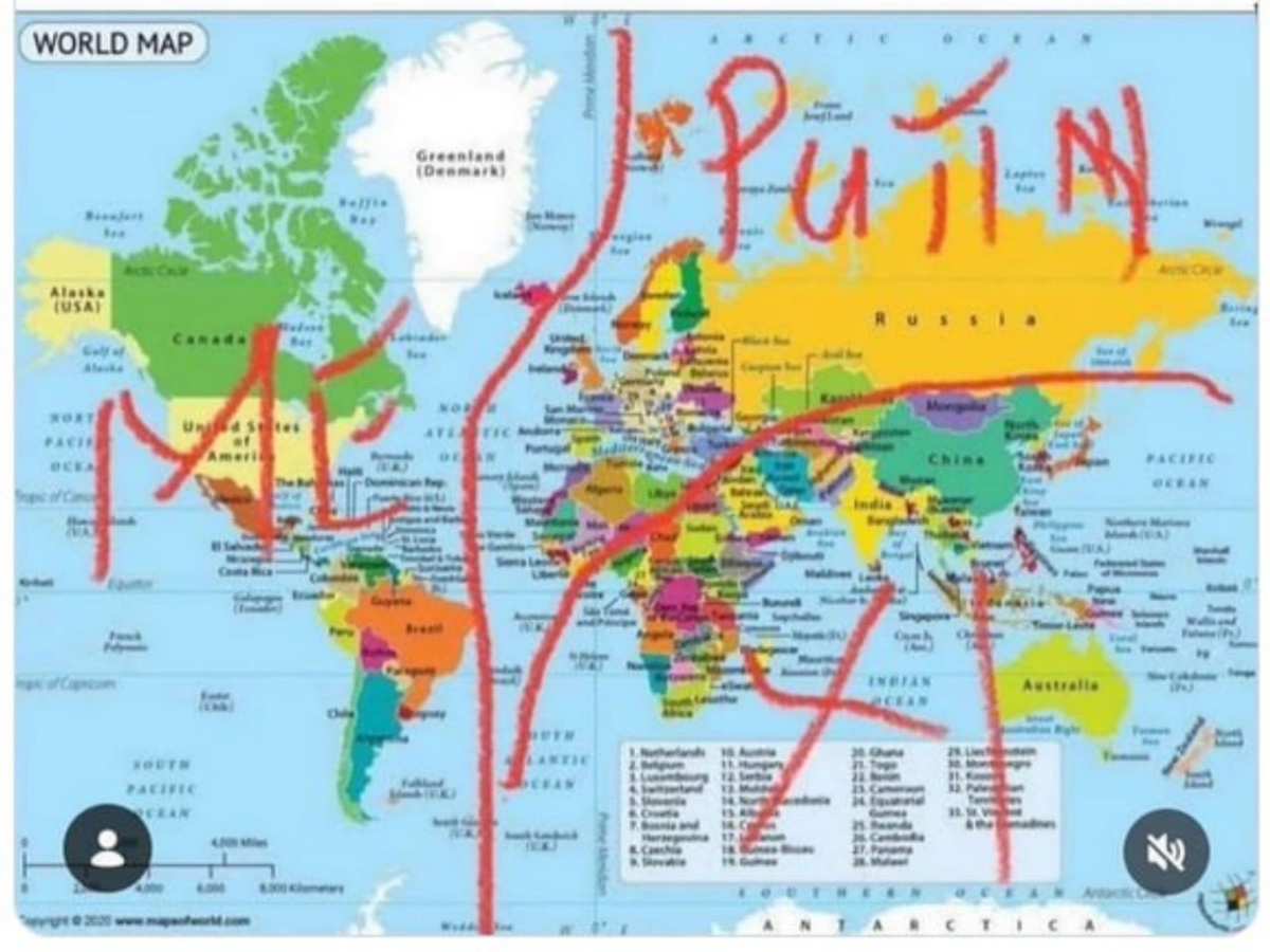 В сеть утекла карта, где Трамп разметил зоны мирового влияни между собой, Путины и Си 😉