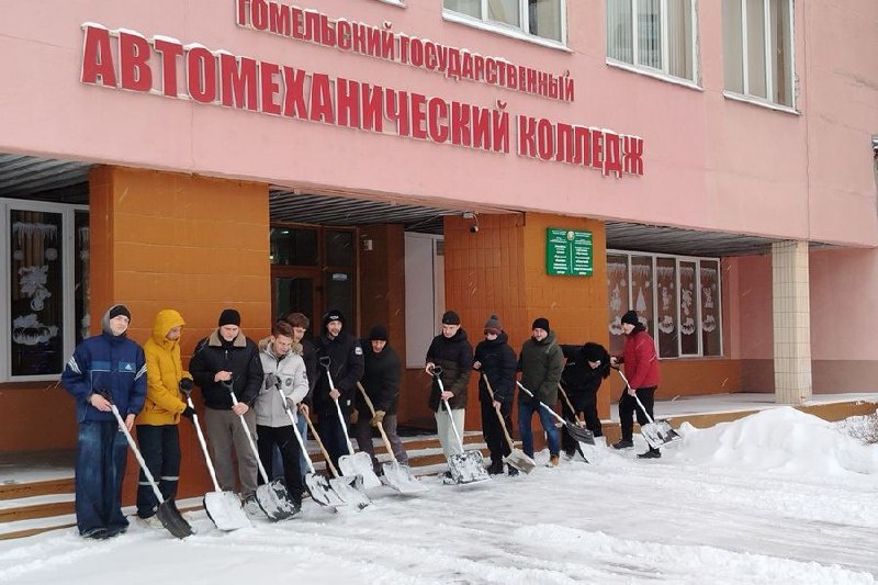 В Гомеле коллектив автомеханического колледжа ударно потрудился на уборке снега