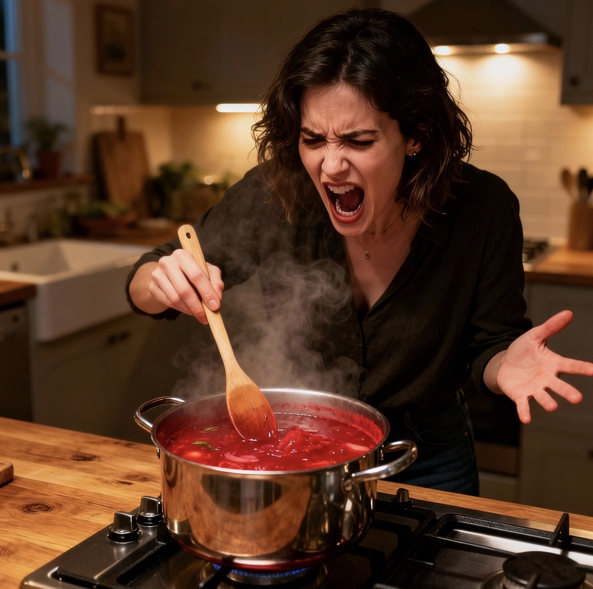— Так, стоп! — скомандовала она. — Нет, Надя, ты меня извини, но это разве ж борщ? Водичка какая-то! Его ж как готовить надо...