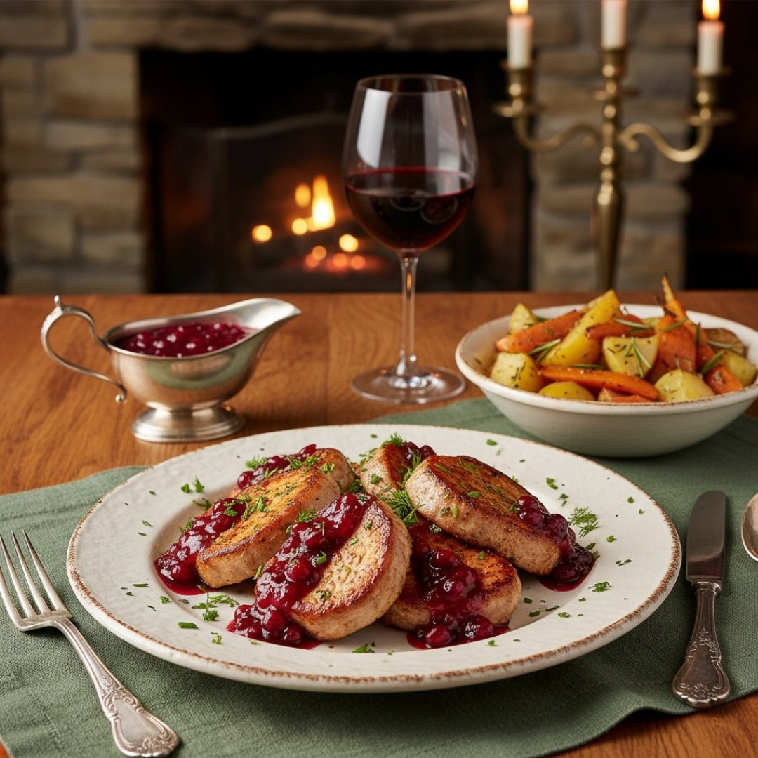 Ингредиенты ⤵️ 🔸Свиная вырезка — 600 г 🔸Соль, чёрный перец — 1 щепотка 🔸Паприка копчёная — 1 ч.л. 🔸Масло растительное — 2 ст.л. 🔸Сливочное масло — 30 г 🔸Розмарин свежий — 2 веточки 🔸Клюква — 150 г 🔸Сахар — 4 ст.л. 🔸Бальзамический уксус — 1 ст.л. 🔸Вода — 100 мл 🔸Сливочное масло — 20 г Приготовление🍖 1. Духовку разогреть до 180°C. Вырезку нарезать медальонами, натереть специями. 2. Обжарить на смеси масел с розмарином до корочки с двух сторон. 3. Довести до готовности в духовке 8-12 минут. Дать отдохнуть под фольгой. 4. Для соуса проварить клюкву с сахаром, водой и уксусом 7-10 минут. Протереть. 5. Полить медальоны соусом перед подачей. Рецепт дня #медальоны #свинина #мясо #клюквенный_соус