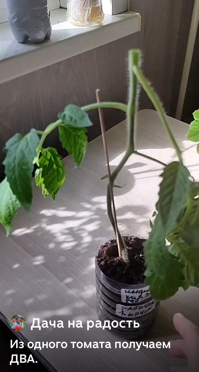 - Реанимация - Посаженные черенки накрывают колпаком (банкой, пакетом) на 3-7 дней . Если ставим просто в воду, то ничем не накрываем. Просто в воду капаю 10 капель перекиси водорода. Он и стимулирует и не даёт томату заболеть. Когда появились корешки томат высаживаем в горшочек.