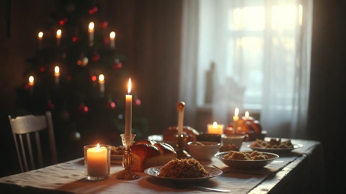 С появлением первой звезды на вечернем небе пост заканчивался. Семья садилась за праздничный стол — но и этот стол был особенным, постным.
