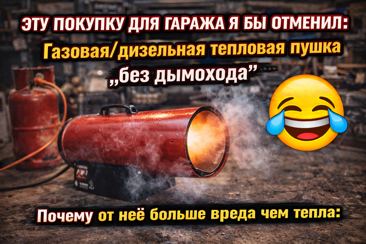 Первые 10 минут кайф: тепло пошло, руки ожили, жизнь наладилась. А потом началось: сырость на стенах, инструмент рыжеет, голова тяжёлая, в гараже запах “как на заправке”.