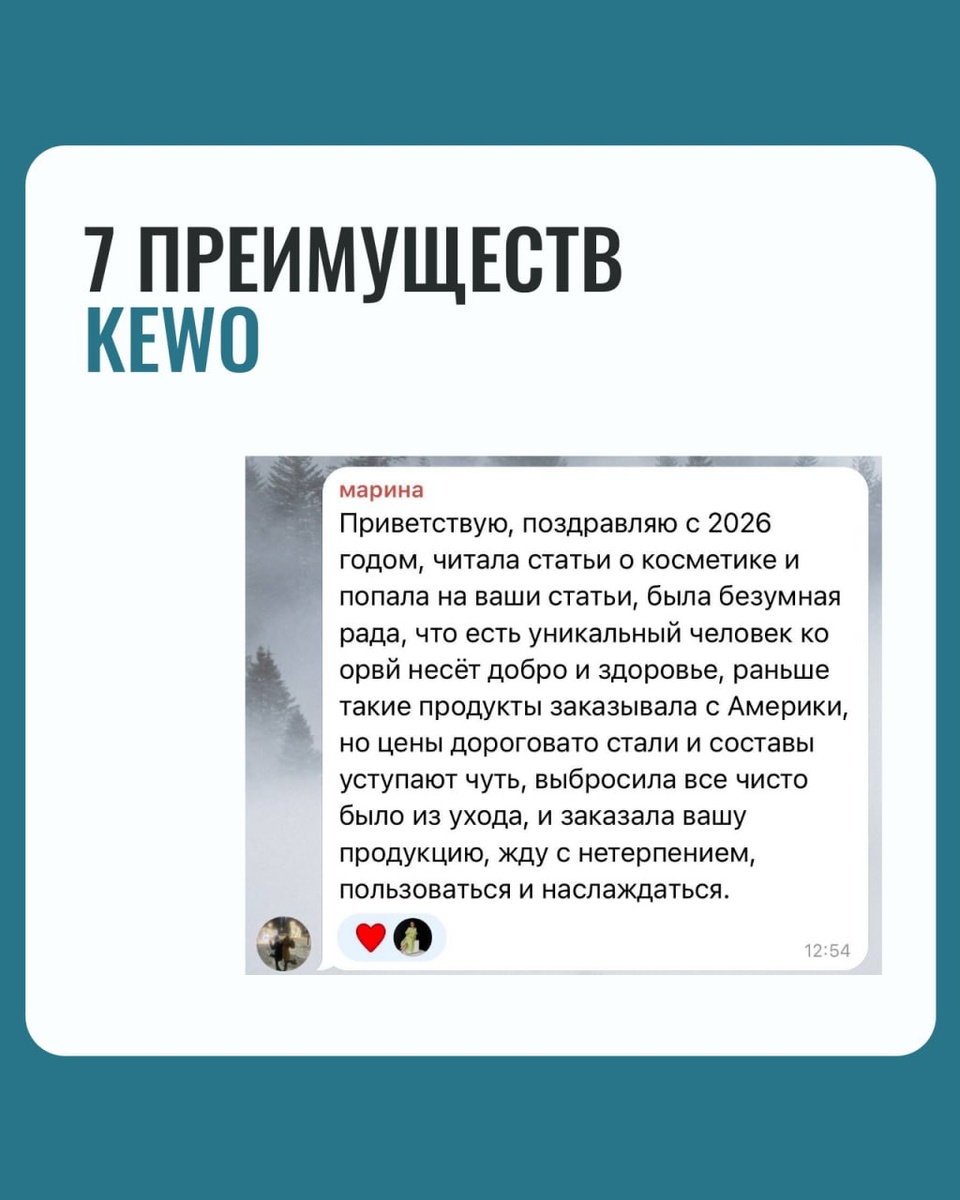 Пришло время сравнить и отпустить навсегда. В связи с окончательной утратой доверия. Как в качестве продукции, так и в партнерских отношениях. Я не нападаю первой, но защищаюсь без компромиссов. Итак, 7 преимуществ KEWO по сравнению с *апи: 1. Чище составы. Основа крема содержит только физиологичные липиды и НУФ без компромиссов. Нет акрилатных и PEG образователей текстуры: Lecigel, Xalifin, Carbomer. 2. Меньше раздражающий потенциал при той же эффективности. Составы короткие и понятные, не содержат ассорти модных активов, спикул, DMAE и всего-всего и побольше. Только надежные, проверенные временем, компоненты в синергии и рабочих дозировках. 3. Более физиологичная база, оптимальный липидный профиль, нет ощущения "недостаточно увлажняет". Основа крема содержит только физиологичные липиды и НУФ без компромиссов. Поэтому крем быстро впитывается, отлично увлажняет и питает, не создает пленки и не скатывается. 4. Простая понятная система ухода - нет батареи флаконов, нет вопросов "а