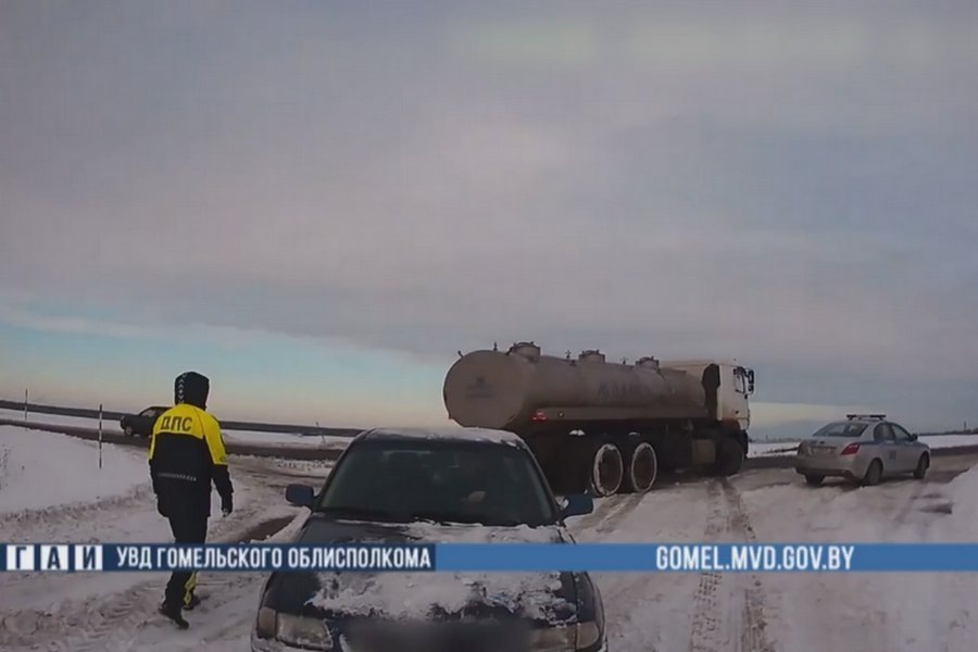 На Гомельщине сотрудники ГАИ помогли застрявшему в снегу водителю