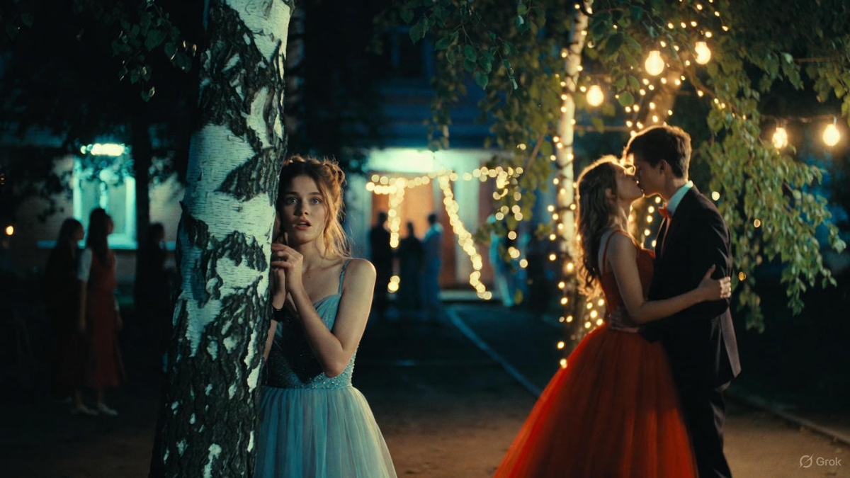 Вечер начался идеально. Зал украшен, играет живая музыка, все в предвкушении свободы и чуда. Артём выглядел невероятно взрослым в строгом костюме, который, как я потом узнала, ему сшили на заказ. Он был слегка не в своей тарелке, но улыбался своей кривой улыбкой, которая сводила меня с ума. Мы танцевали, смеялись, фотографировались. Он похвалил моё платье. «Похожа на эльфа из твоего любимого романа», — сказал он, и моё сердце ёкнуло. Казалось, звёзды сошлись. После традиционного вальса и запуска шаров в небо началась неформальная часть. Я увидела, как Артём куда-то скрылся в толпе. «Отлично, — подумала я. — Сейчас найду его на улице, где тихо, и скажу всё». Я поправила платье, сделала глубокий вдох и вышла в школьный двор, озарённый гирляндами и лунным светом.