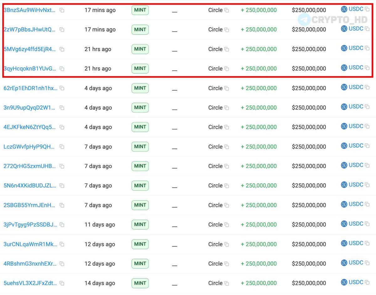 π€ Solscan: ΠΠΎΠΌΠΏΠ°Π½ΠΈΡ Circle Π½Π°ΠΏΠ΅ΡΠ°ΡΠ°Π»Π° #USDC Π½Π° $1,000,000,000 Π·Π° ΠΏΠΎΡΠ»Π΅Π΄Π½ΠΈΠ΅ ΡΡΡΠΊΠΈ.