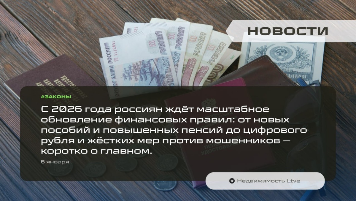 ⚡️ С 2026 года россиян ждёт масштабное обновление финансовых правил: от новых пособий и повышенных пенсий до цифрового рубля и жёстких мер