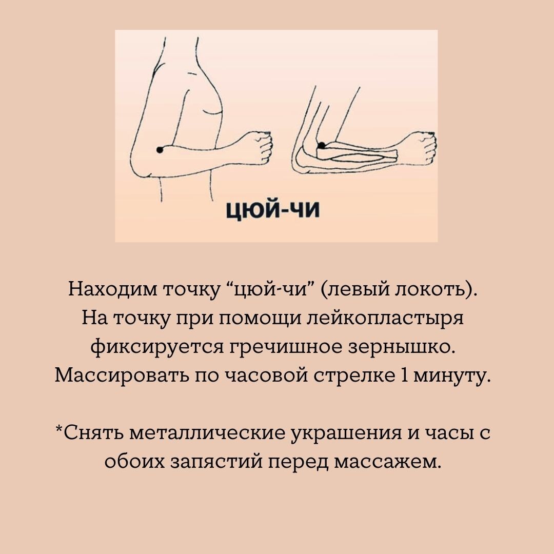 2. Приложите зернышко как показано на рисунке на точку ЦЮЙ - ЧИ, закрепите пластырем.