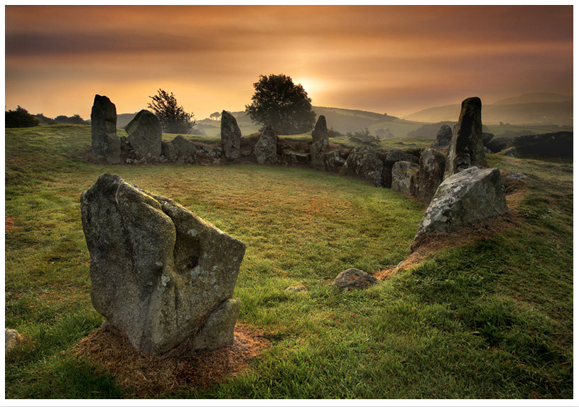 А насколько распространены были эти гробницы с двориками? Вообще-то, по частоте встречаемости это вторая группа — уступают только галерейным гробницам энеолита и ранней бронзы. Галерейных гробниц известно 582, придворных — 429, коридорных (к которым относится НьюГрендж) — 231, а портальных — 219. Примечательно, что строили их к северу от воображаемой линии Буррен — полуостров Куэли (действие драматических событий «Похищение быка из Куильне» происходило именно там, фонетика сильно изменилась), за пределами встречаются единичные памятники этого типа. В отличие от коридорных и портальных гробниц, придворные всегда были частью обитаемого ландшафта, не сакрального — подобно тому, как церкви и смиренные кладбища стали нераздельными спутниками деревень и поместий Британии. По всей видимости, каждая община возводила собственную гробницу, и хоронили в ней только своих.
