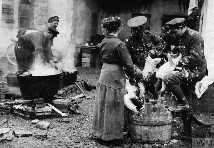 Итальянка, помогающая британским солдатам готовить индейку на рождественский ужин, декабрь 1917 года.