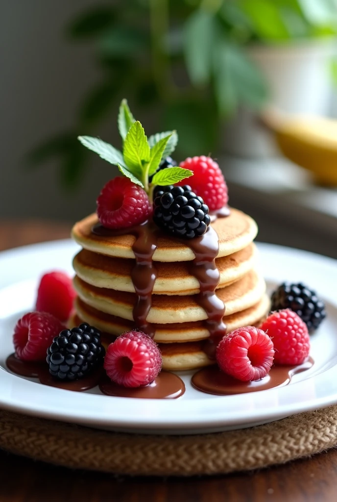 Вы когда-нибудь пробовали завтрак, который выглядит как искусство, а на вкус — как облако? Мини-панкейки с ягодами и шоколадом — это именно та эстетика, которой хочется делиться. Они крошечные, идеально круглые и невероятно нежные!