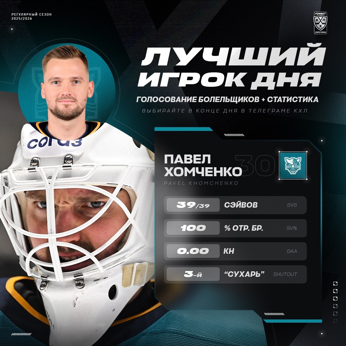 39 сэйвов в сухом матче — второй показатель в карьере Павла Хомченко!