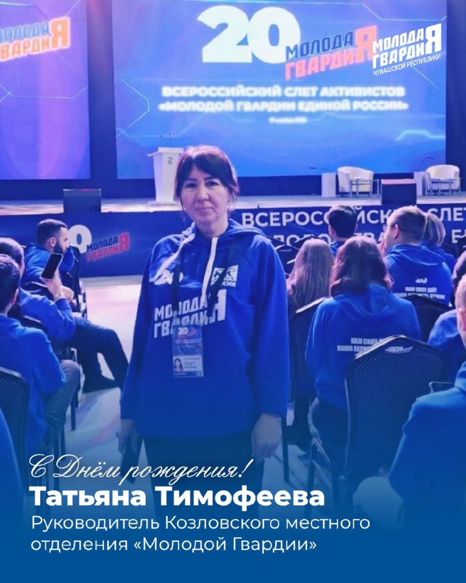 Козловского местного отделения Татьяну Тимофееву! Вы в рядах нашей организации уже столько лет — и мы этим гордимся! Благодарим за каждое организованное мероприятие и за каждую воплощённую идею. ❤️Желаем вдохновения и энергии для новых свершений, крепкого здоровья и отличного настроения, профессиональных побед и роста, а также счастья, уюта и тепла. Мы ВКонтакте ⚡️