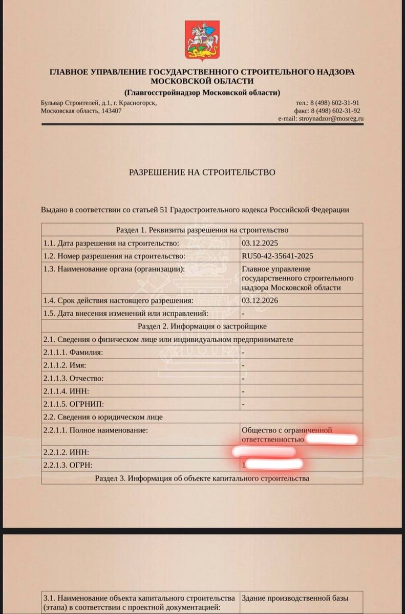 Получили разрешение на строительство здания производственной базы в городе Долгопрудный. На этом же участке ранее ввели в эксплуатацию здание для выкупа участка с аренды. Оказалось, что на участке нужно провести такую же процедуру по еще одному зданию, чем мы и занялись. Фронт работы: - Подготовка отчетов по инженерным изысканиям - Разработка проектной документации - Согласования размещения объекта, в том числе с аэродромом Чкаловский и с ФСО России - Получение Разрешения на строительство По всем вопросам создания коммерческой недвижимости обращайтесь в личные сообщения @petrovdevelopment