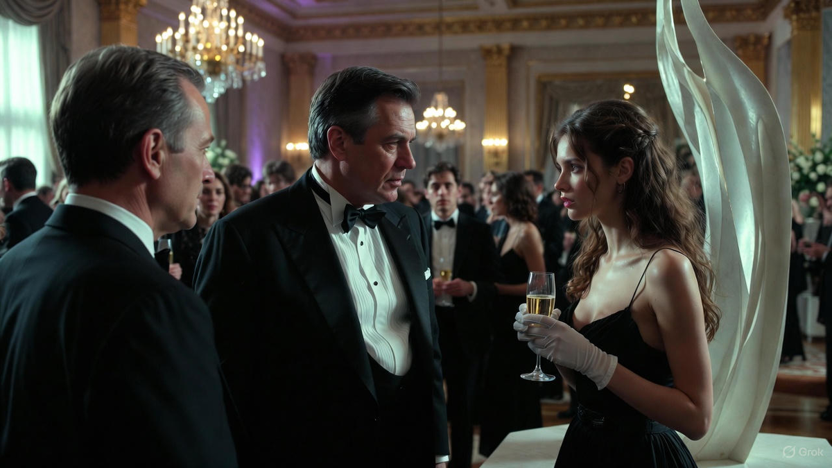 Зал поражал своим сочетанием старинной лепнины и ультрасовременных инсталляций. Воздух был густ от смеси дорогих духов, денег и скрытого напряжения. Мы с Марком разделились, как и договорились, — он растворился в толпе, наблюдая за периметром, а я с бокалом минеральной воды в руках (никакого алкоголя, нужна была абсолютная ясность) медленно двигалась между гостями, будто разглядывая лоты.