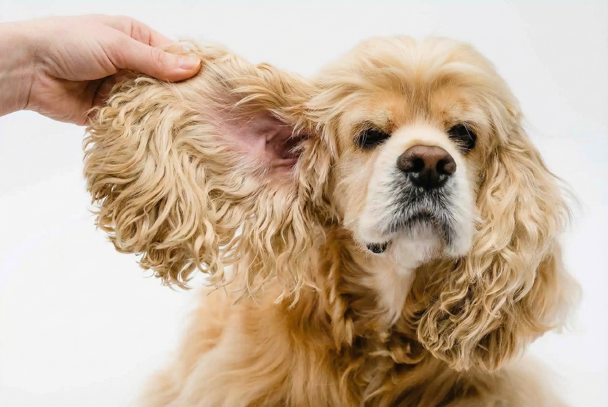 - Скопление секрета: Внутри уха вырабатывается сера (ушная смазка). У здоровой собаки она выводится естественным путем, но у кокера из-за изгиба ушного канала она застаивается, смешивается с пылью и шерстью, образуя идеальную среду для бактерий и грибков (Malassezia).