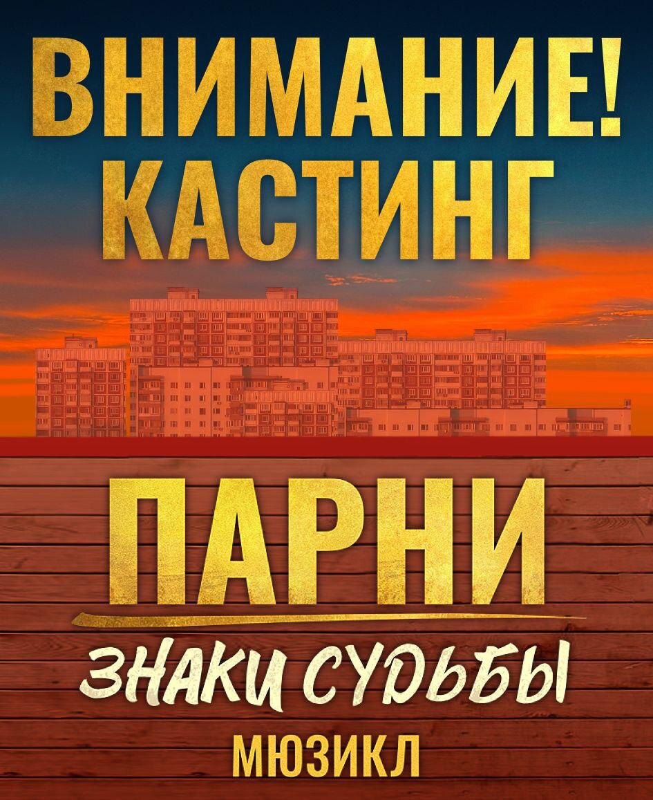 Екатеринбург (все города) Идет кастинг в мюзикл "ПАРНИ. ЗНАКИ СУДЬБЫ" при поддержке Уральского государственного театра эстрады ТРЕБОВАНИЯ: ▫ Возраст: от 18 до 30 лет ▫ Типаж и внешние особенности: нет строгих требований к внешним данным ▫ Актёрский опыт ▫ Эстрадный вокал: - уверенное владение голосом, чистое интонирование - умение петь в ансамбле ▫ Танцевальные навыки ▫ Профессиональные качества: - дисциплина, ответственность, готовность к интенсивным репетициям - быстрая обучаемость и адаптация - умение работать с режиссёром, хореографом, музыкальным ансамблем - командность ДАТЫ ПОКАЗОВ: 15-30 апреля 2026 года ПОДАЧА ЗАЯВОК --------------- Опубликовать своё объявление в канале "Танцоры и хореографы России" жми сюда Опубликовать свою вакансию или резюме в специальном чате для танцоров и хореографов жми сюда