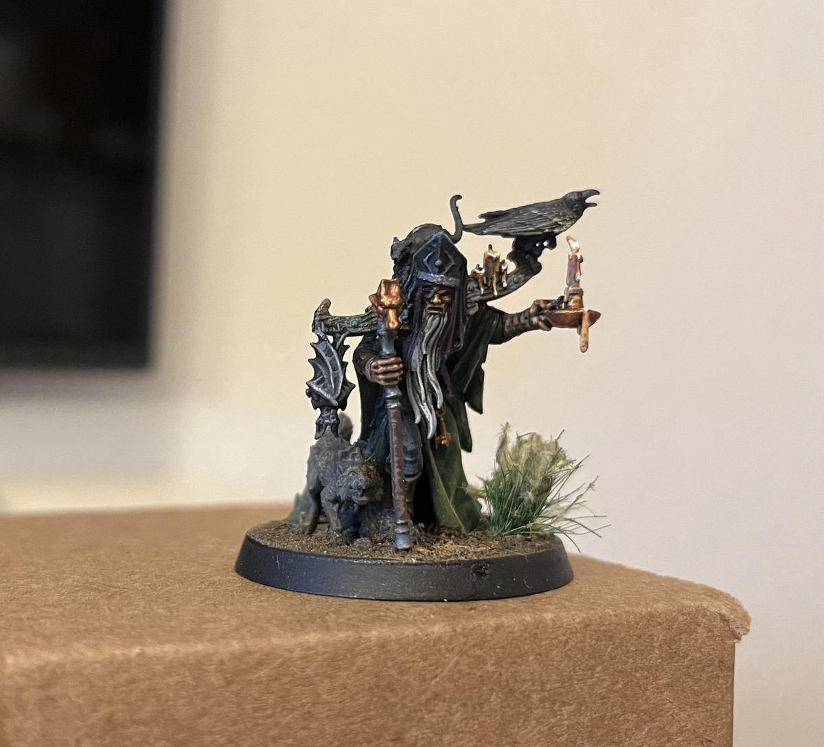 Torgillius. Тоже шикарного некроманта для Вампиров покрасил. И тоже... тоже уже продал, т.к. и его из АоСа выпиливают 🙁 Но классно у него свиток на спине вышел 🙃