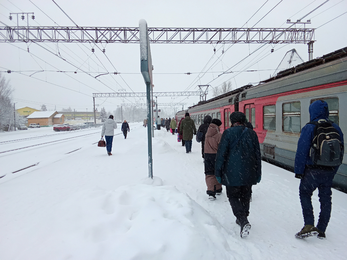 Когда выходили из дома был легкий морозец. В хорошем настроении дошли до ж/д станции и на электричке доехали до Токсово На станции в киоске решили купить хлеба. Хлеб в киоске быстро раскупается и в этот раз нам удалось купить буханку теплого пшеничного хлеба Сквозь заснеженное поселение отправились в сторону леса и полюбовались зимними видами Пересекли трассу и попали в дебри СНТ. Наша задача была посетить озеро Волоярви, погулять по зимнему лесу и вернуться на станцию. Начавшийся снегопад оправдал прогноз синоптиков... Восхитились зимними видами леса и по тропе углубились в лес. В лесу - просто сказочно! Мы уже несколько лет не посещали лес зимой и в этот раз были в восторге... В какой-то момент мы поняли, что заблудились и немного поплутали по лесу В какой-то момент я вообще потерялась в пространстве. Вида не подаю и следую за мужем... Обрадовались когда вышли к СНТ "Спорт". На дороге через поселение, кроме двух собак, не встретили ни одного человека Дошли до Куршевеля и здесь сориен