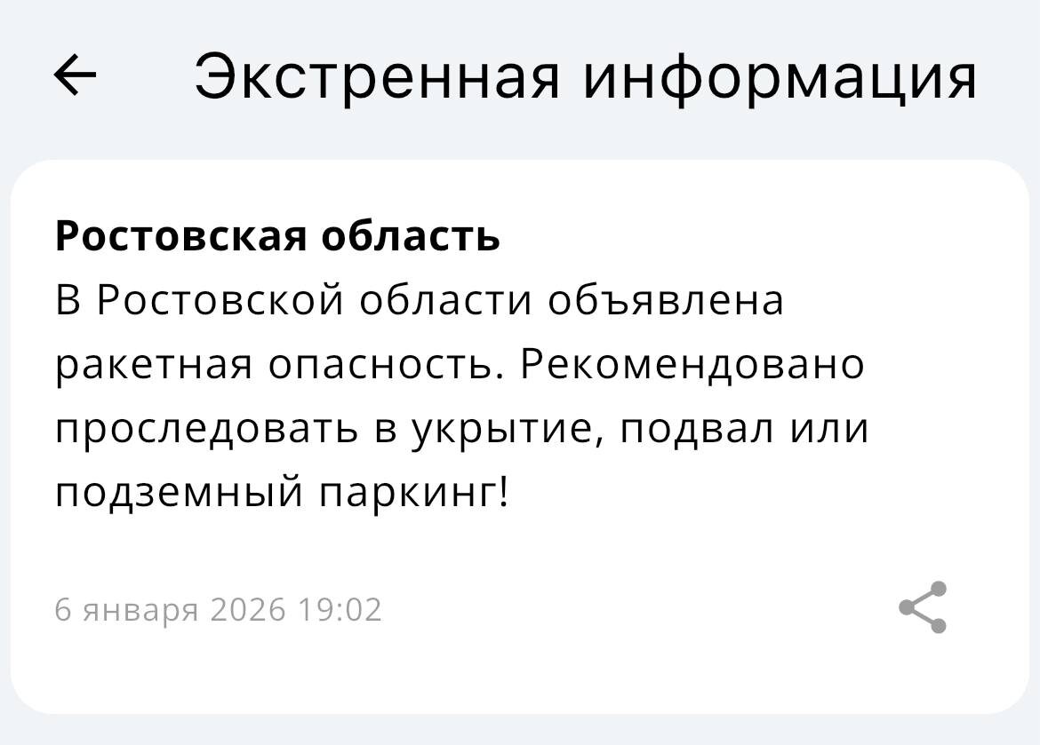 ‼️В Ростовской области объявлена ракетная опасность
