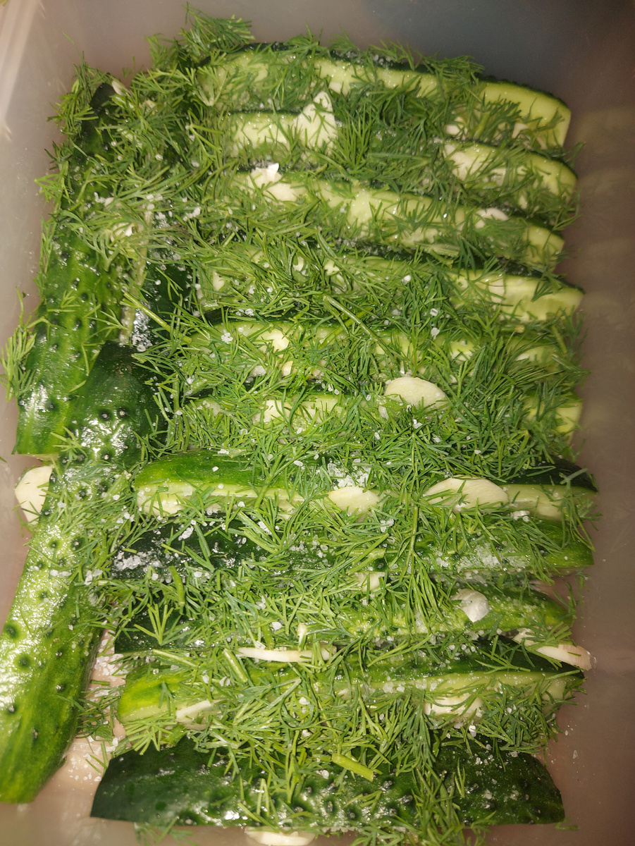 Сейчас, в пять вечера, ещё не поздно приготовить к столу малосольные огурчики почти как летом с грядки.