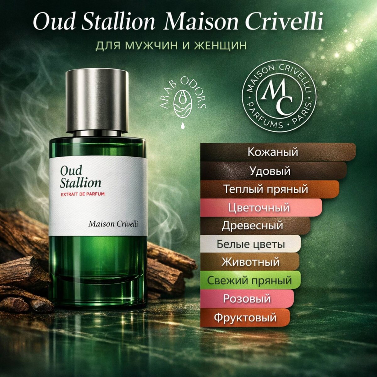 Мокрая кожа, древесина, тёплые специи — всё звучит глубже, плотнее, чище. Так начинается знакомство с Oud Stallion Maison Crivelli. Этот аромат не раскрывается «в лоб». Он будто собирается по слоям: сначала — кожа и уд, сухие, благородные, почти минеральные. Затем появляется тепло специй, мягкое, обволакивающее, без резкости. Чуть позже — цветы, не сладкие, а чистые и сдержанные, которые балансируют всю композицию. В базе — древесина, спокойная и уверенная, создающая ощущение собранности и вкуса. Oud Stallion звучит особенно красиво в прохладную погоду и вечером — когда хочется не лёгкости, а глубины. Он отлично садится на кожу, не спорит с образом и не перетягивает внимание, но его всегда замечают. Это аромат для тех моментов, когда: — важна уверенность, а не громкость — образ собранный, чистый, продуманный — хочется оставить впечатление без лишних слов Универсальный унисекс, который одинаково красиво раскрывается и на мужской, и на женской коже. Строгий, но живой. Тёплый, но не