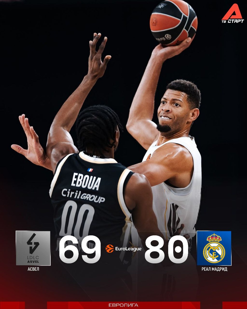 ! На протяжении трех четвертей мадридцы проигрывали АСВЕЛу, но забрали заключительную десятиминутку с разницей +16. Итоговая победа со счетом 80:69. Также отметим победу «Фенера» над «Олимпиакосом» (88:80). Как вам сегодняшний игровой день Евролиги? 🤔 Подписывайся на ТВ СТАРТ в MAX📲