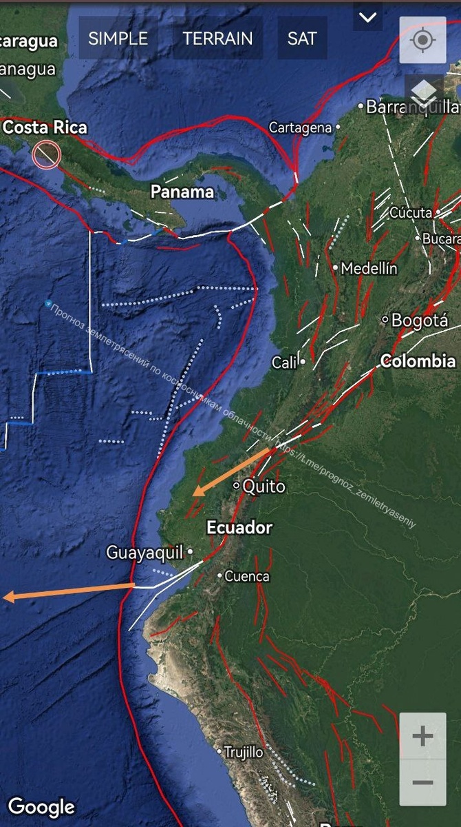 Для Эквадора есть вероятность землетрясения М6-7 до 15 января
