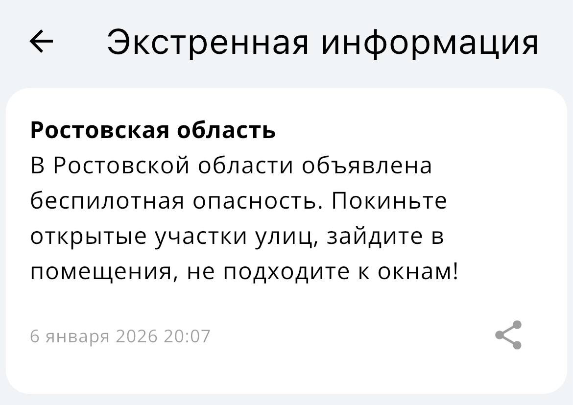 ‼️ В Ростовской области объявлена беспилотная опасность.