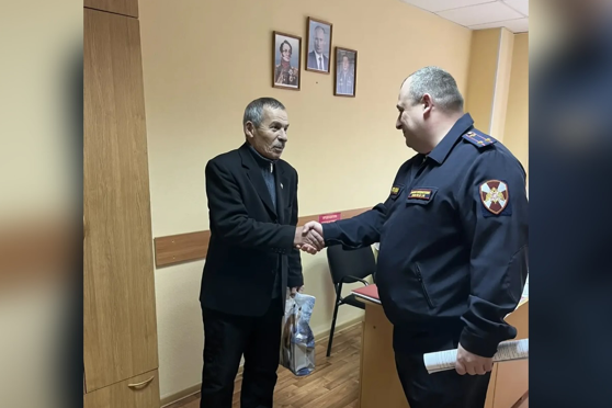 Офицер вневедомственной охраны выразил Фариту Фатиховичу глубокое уважение, пожелал крепкого здоровья и долгих лет жизни, а также вручил ему подарки от имени всего личного состава подразделения.